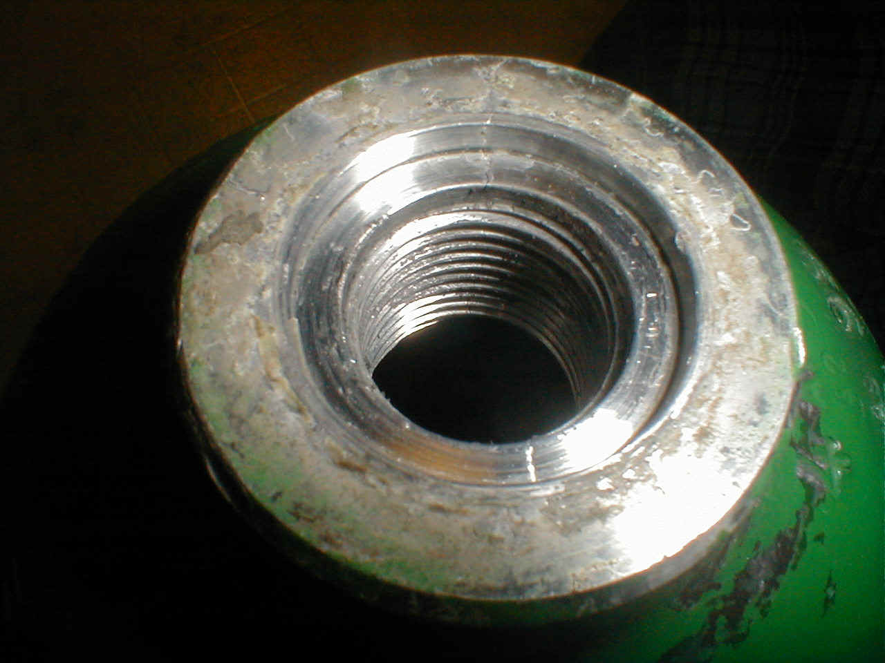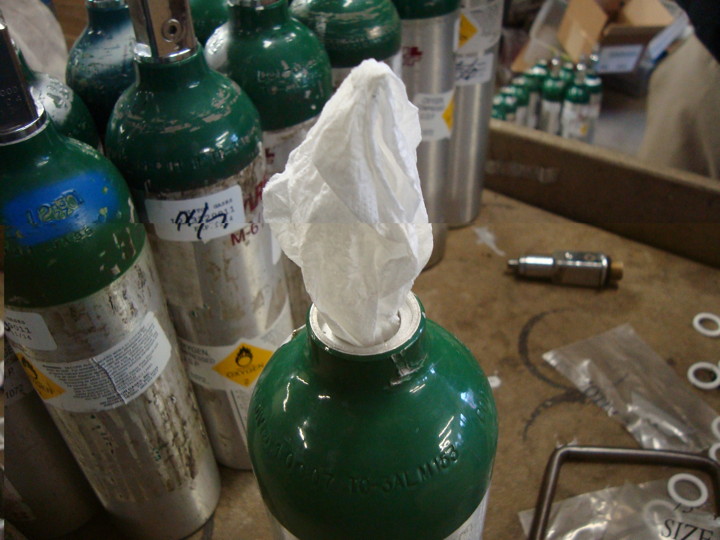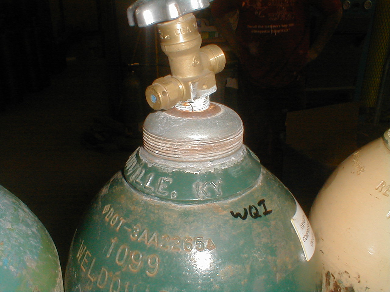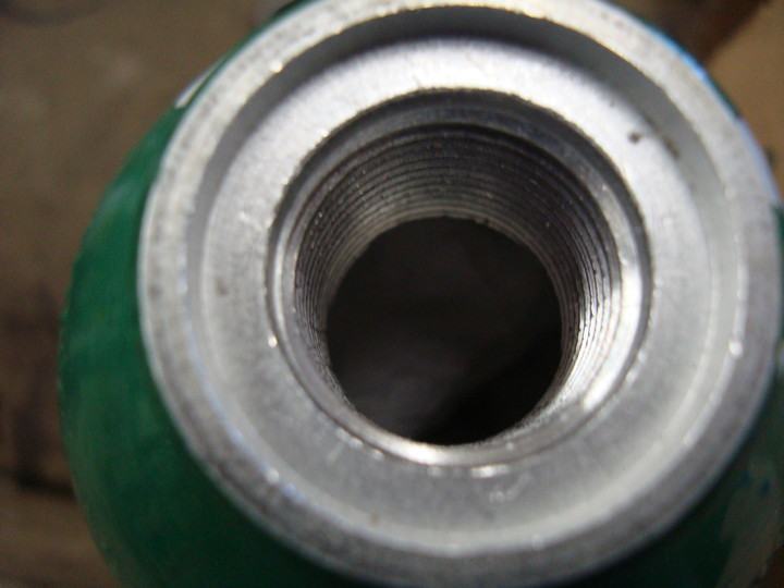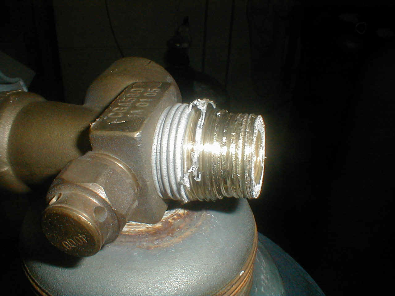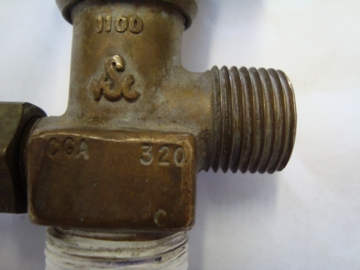 Unauthorized attempt to convert a CGA320 CO2 valve to a CGA540 Oxygen