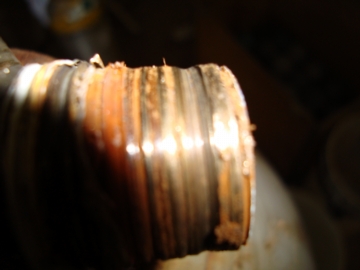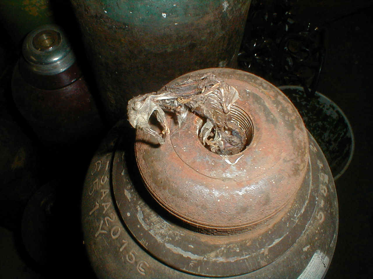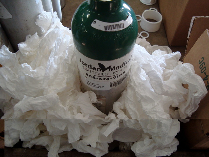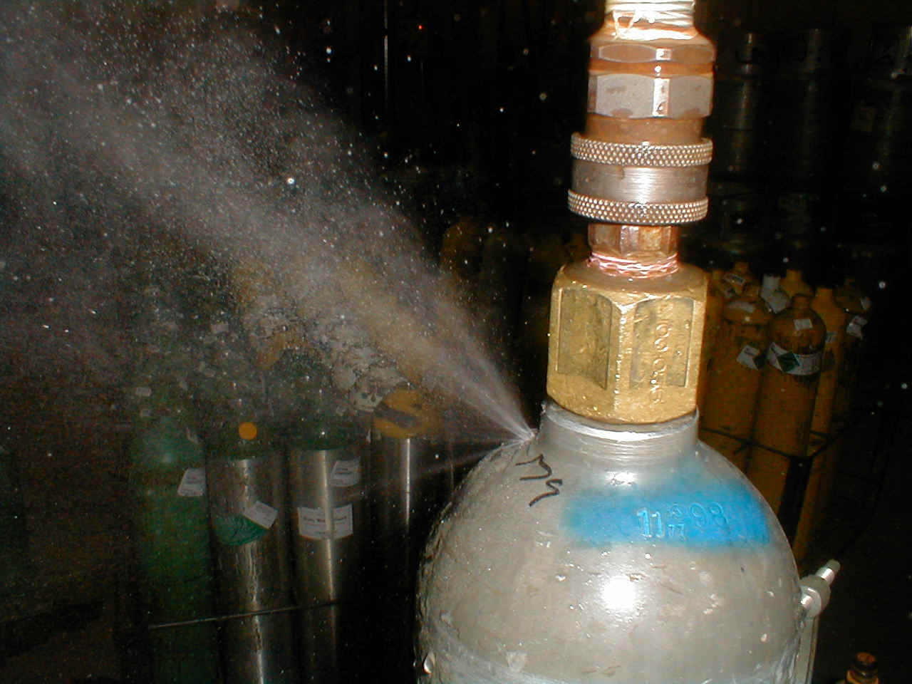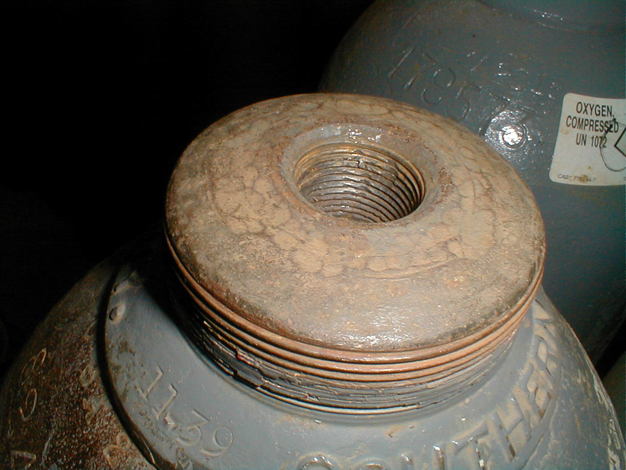 Unauthorized attempt to convert a CGA320 CO2 valve to a CGA540 Oxygen
